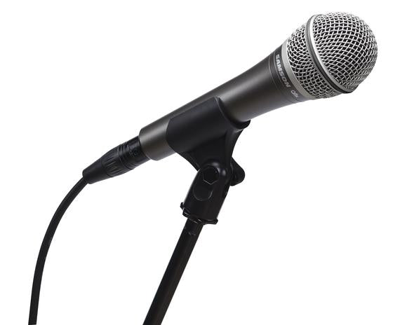 Samson's flagship Q8x Professional Dynamic Vocal Microphone provides the ultimate in sound reproduction for live and studio vocal and instrument performances. This high output mic faithfully captures a wide dynamic range with exceptional mid-range clarity. Its supercardioid pickup pattern provides maximum gain before feedback, while an updated body design and pneumatic capsule shockmount minimize handling noise.