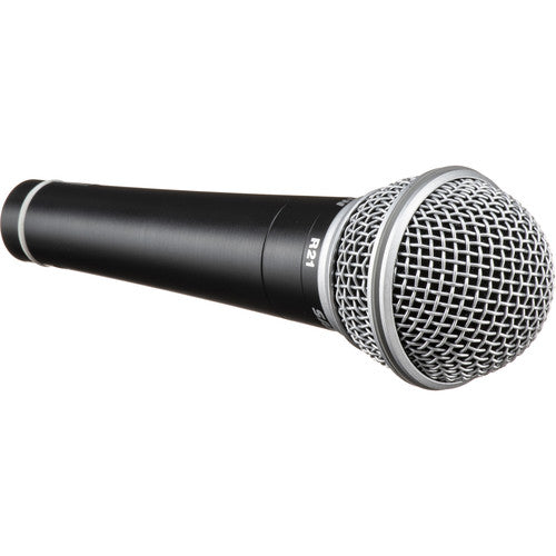 The R21 Dynamic Vocal/Presentation Microphone 3-Pack features three R21 mics, each with a tight cardioid pickup pattern for maximum gain before feedback, a dual-stage windscreen, heavy gauge mesh, and anti-dent ring for enhanced protection, as well as gold-plated XLR pins that ensure positive connectivity.