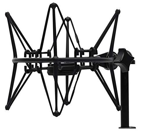• The titanium black SP04 Spider Shockmount from Samson is a professional, studio-grade shockmount for the Samson G-Track and G-Track Pro USB condenser microphones. It can be used to help isolate the microphone from vibrations and eliminate mechanical noises when capturing audio in applications for live stage, theater, recording studios, broadcast TV, and more. The SP04 Spider Shockmount will fit a standard microphone stand with a 5/8" thread.