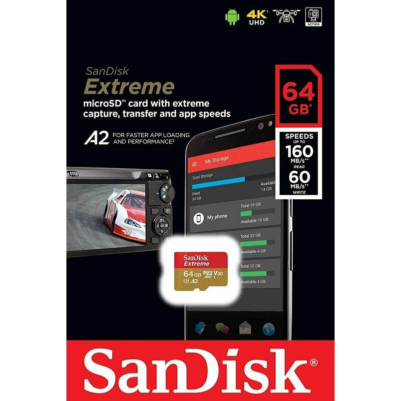 SanDisk Extreme Micro SD Card 64GB UHS-I SDXC Class 10, 170mb/s and 80mb/s Read and Write Speed | SDSQXAH-064G-GN6MN