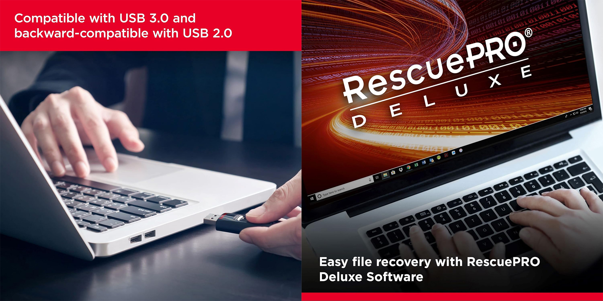 The drive comes with a RescuePRO Deluxe data recovery software download offer (5). This software makes it easy to recover files that have been accidentally deleted (download required).