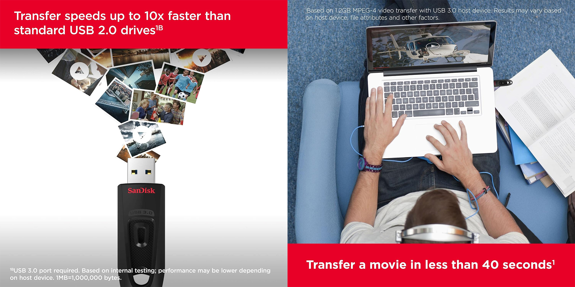 With write speeds up to 10X faster than standard USB 2.0 drives (1), you can transfer a full-length movie in less than 40 seconds (2).