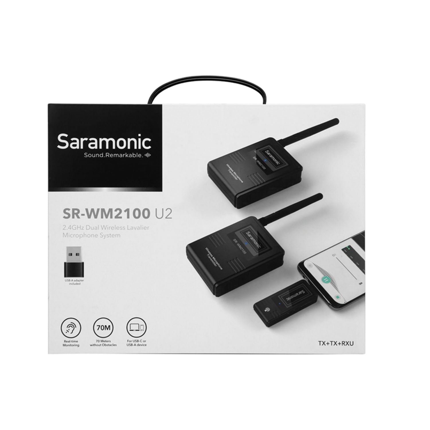 [CLEARANCE] Saramonic SR-WM2100 U2 2.4GHz Dual Wireless Lavalier Microphone System (TX TX RXU) with 70-meters Operating Range Detachable Antenna USB-C to USB-A Adapter