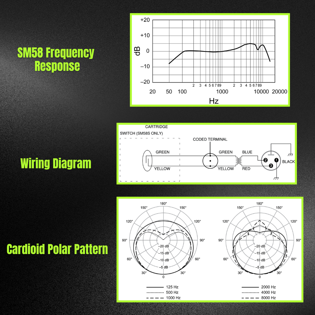 - Frequency Response: 50 Hz – 15,000 Hz (tailored for vocals with brightened midrange and bass roll-off)