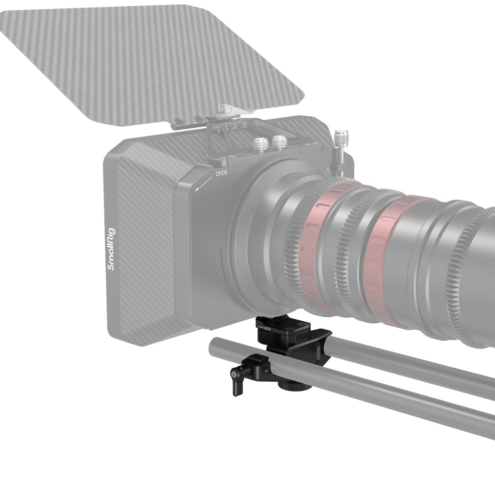 The dedicated 15mm LWS Rod Support is designed for the SmallRig matte box 2660 and features 15mm LWS open-ended rod ports that are secured around standard 15mm rods using a single locking lever. With this flexible design, it can be clamped on and off by quick release without having to remove any gear from your rig. It secures to the bottom of the matte box via an integrated 1/4"-20 screw and is adjustable vertically and horizontally to support different lenses.