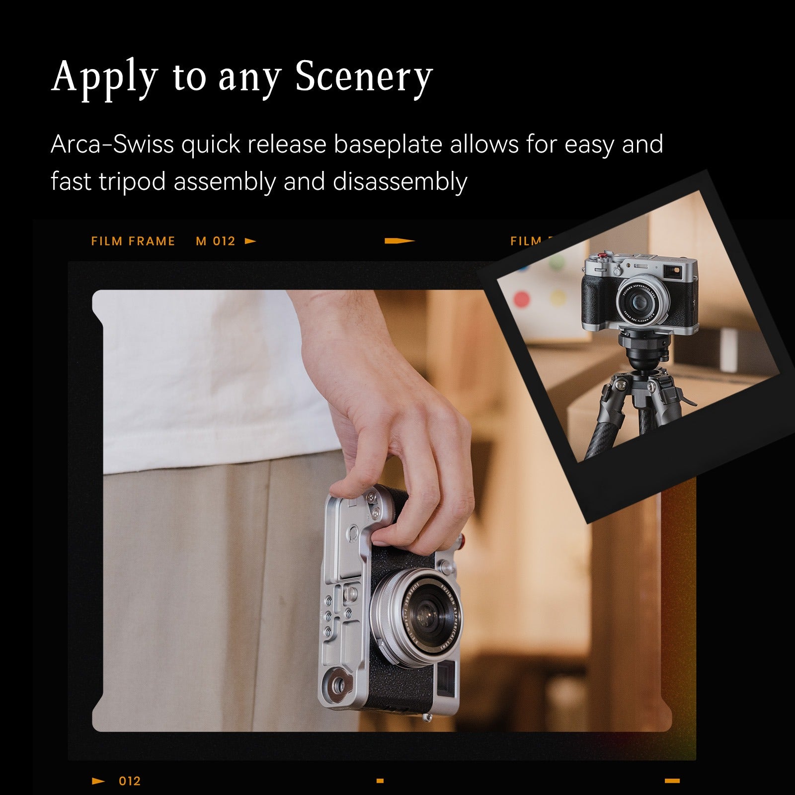 ● Arca-Swiss Quick Release: Features Arca-Swiss quick release plate for easy tripod mounting.