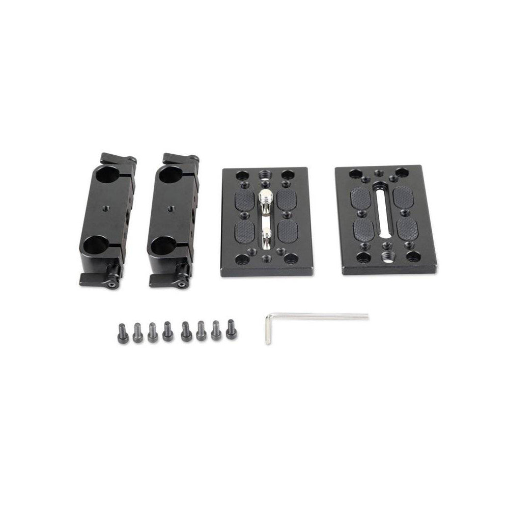 The SmallRig Tripod Mounting Kit with 2 x Plates and 2 x 15mm Rod Clamps is designed with two mounting plates, enabling you to offset the weight of a front-heavy camera rig so the rig remains balanced on your tripod. Two 15mm LWS rod clamps can be used separately or together on the baseplate to support camera accessories.