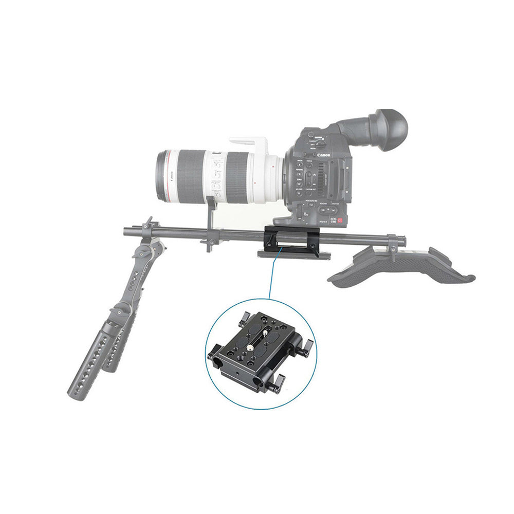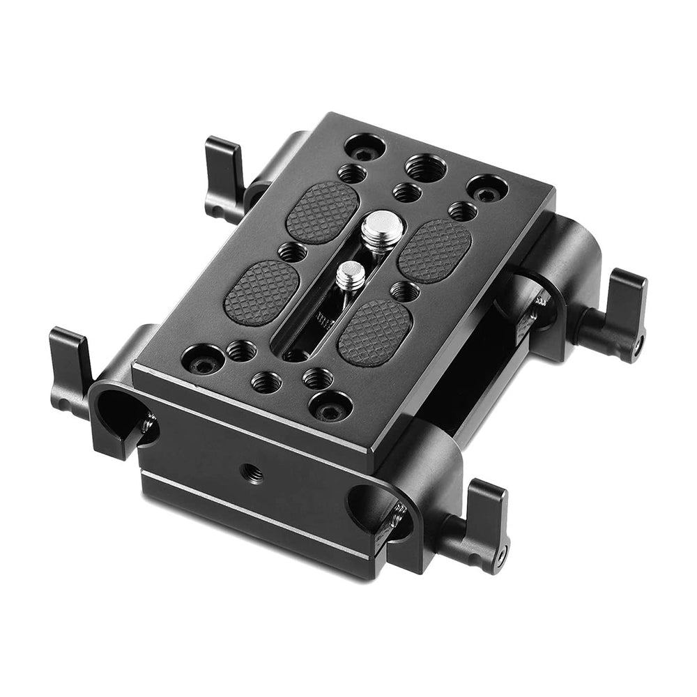 MOUNTING PLATE FOR CAMERA: SmallRig Base Plate 1798 features two solid and durable aluminum plates with two 15mm rod clamps. It can be attached to a camera, cage, or tripod via 1/4"-20 or 3/8"-16 screws. It provides a secure and stable platform and adds mounting holes to attach accessories.