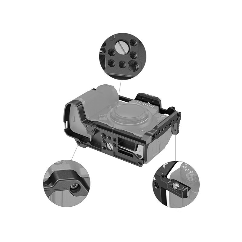 Add accessories and protect your FUJIFILM X-H2S camera with this Camera Cage from SmallRig. This formfitting aluminum cage protects your camera from the rigors of daily production life without impeding access to your camera's functions, displays, ports, or battery.