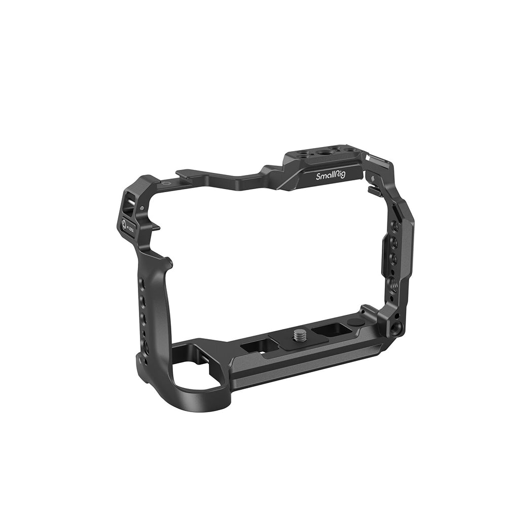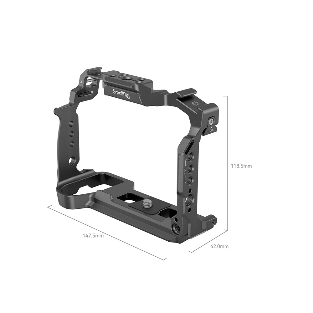 SmallRig Cage for Panasonic LUMIX S5 II / S5 IIX 4022 is designed to attach accessories and protect the camera. It locks the camera via one bottom 1/4"-20 screw and two side lock adapters, with rubber pads preventing scratches. Among its accessory mounting points, 1/4"-20 holes and ARRI 3/8"-16 locating holes support Top Handle 2165C, Side Handle 2093, etc. for easy camera movement and more stability; the front 1/4"-20 locating hole suits Rod Clamp 3276 for follow focus system; and the top ARRI 3/8"-16 locating hole fits Monitor Mount 2903B. It also comes with two cold shoe mounts to attach microphone, LED video light; a top NATO rail for Top Handle 3322; a left NATO rail for Side Handle 3847; and a bottom QD socket to install QD shoulder strap. At the bottom there is an Arca-Swiss quick-release plate, suitable for DJI RS 2 / RSC 2 / RS 3 / RS 3 Pro gimbals and Arca-Swiss tripods, as well as a threaded hole for DJI RS 2 / RSC 2 gimbal quick-release plate (height increase pad) and Arca-Swiss Quick Release Plate 3154. The item also features strap holes on both sides and the bottom, which are compatible with Hand Strap PAC2456, Shoulder Strap PSC2428, etc. Besides, a magnetic wrench is included for easy disassembly and assembly.