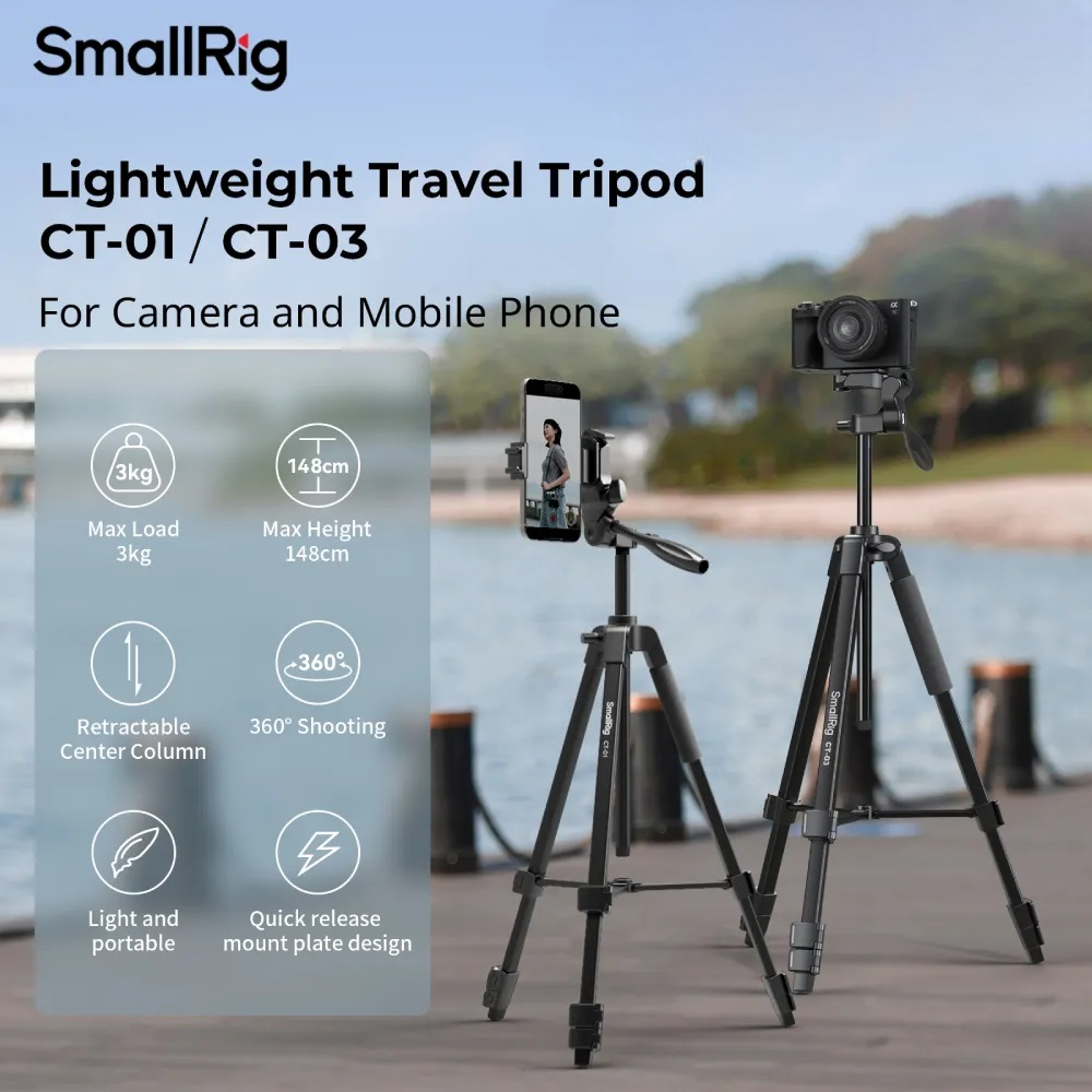 SmallRig Versatile Lightweight Tripod CT-03 4687 (148cm Max Height) / CT-01 4717 (137cm Max Height) are delicately designed for video shooting, live streaming, vlogging, etc, particularly in outdoor scenarios.