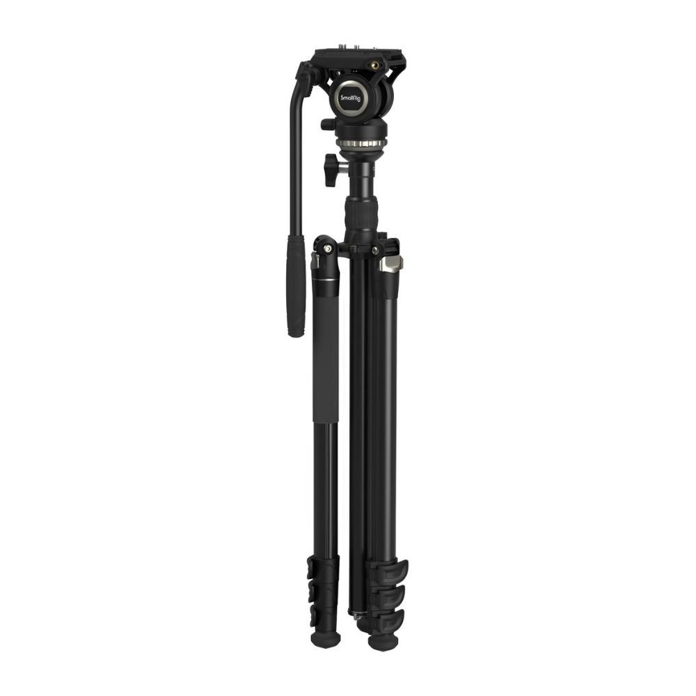 SmallRig CT-210 Aluminum Camera Video Tripod Kit - Sp-On Type Quick Release Fluid Head, Reversible Center Column, 192cm Max Height, 6kg Load Capacity, 4-Section Legs, 360° Panning & 90°/-65° Tilting, Monopod Configuration | 4475