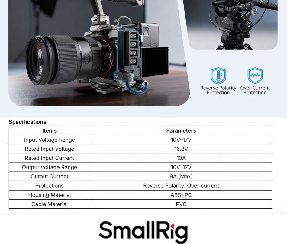• Wide Compatibility: This D-tap power connector splitter is designed specifically for film and television production equipment and is fully compatible with various devices that use D-tap connectors. Its standardized D-tap power connector is also compatible with most SmallRig V-mount batteries (such as the 3579B, 3580B, 3581B, 4292, etc.)