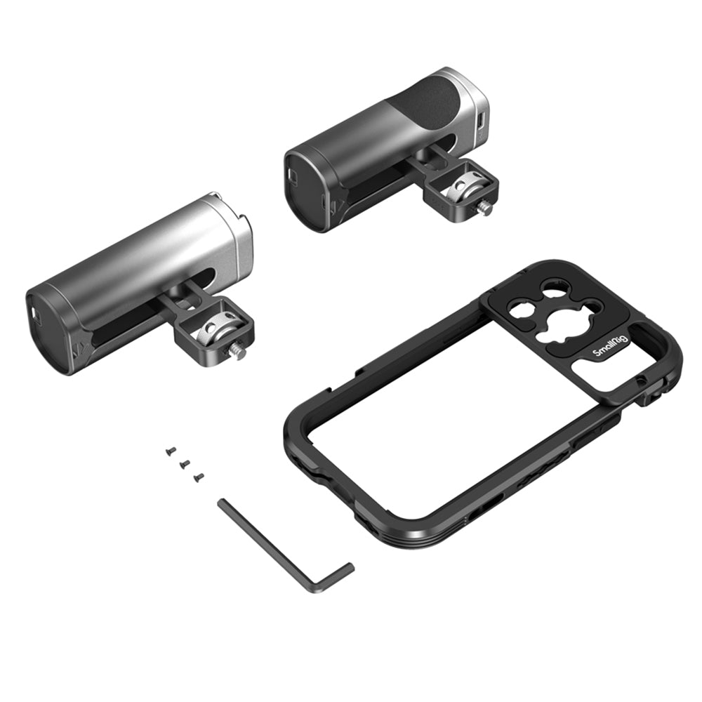 SmallRig Mobile Video Cage Kit (Dual Handheld) features two handles for stable shooting and vlogging, with one wireless control side handle for efficient shooting.