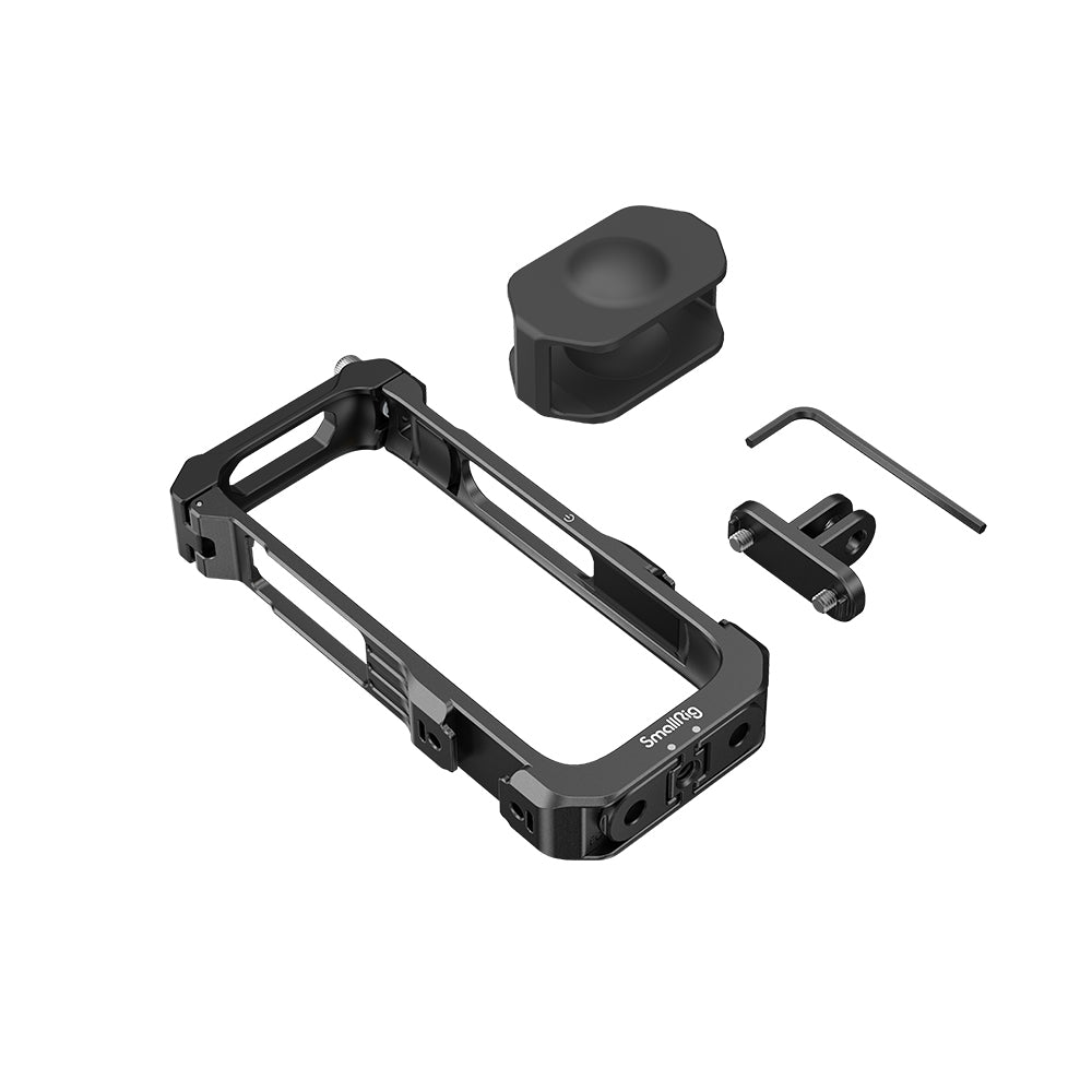 The lightweight aluminum utility frame from SmallRig provides accessory mounting options and protection for your Insta360 ONE X2 camera. The camera mounts onto the frame from the top, securely locked by an easy-to-grasp knurled screw, and it incorporates soft pads to protect the camera from scratching. It maintains full access to the camera's controls and features a variety of mounting options.