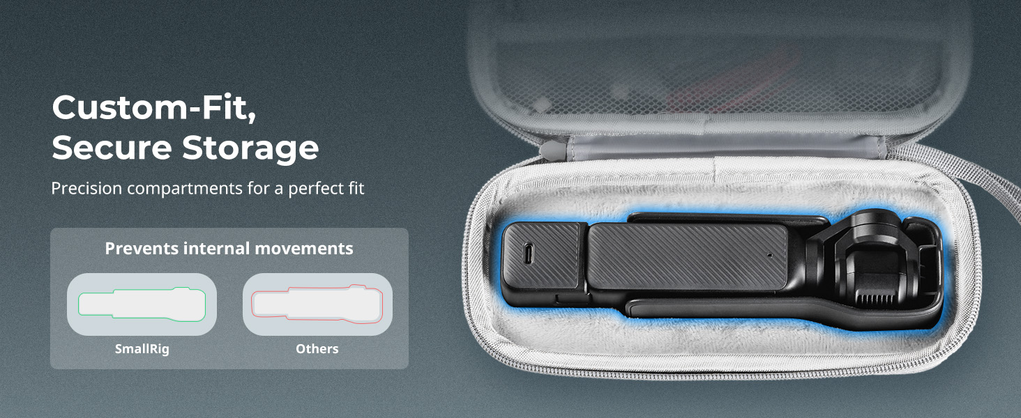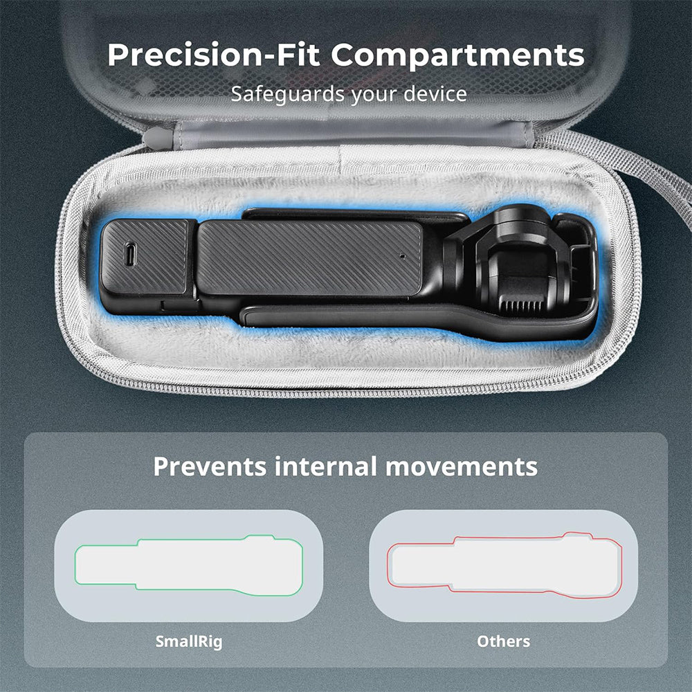 The SmallRig 5118 Carrying Case offers premium protection for your DJI Osmo Pocket 3 with a rugged EVA hard shell, shock-absorbing plush lining, and custom-molded compartments for secure gear storage. Lightweight and compact with a convenient wrist strap, it’s ideal for travel, street photography, or outdoor shoots—balancing durable protection with on-the-go portability.