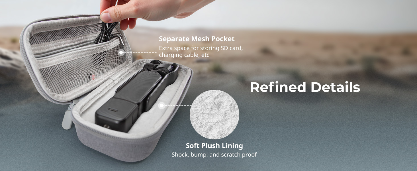 Premium Protection for DJI Osmo Pocket 3: Featuring a rugged hard shell exterior, this case resists pressure and drops, while the soft plush lining absorbs shocks and prevents scratches, ensuring your camera stays safe during urban shoots or outdoor adventures