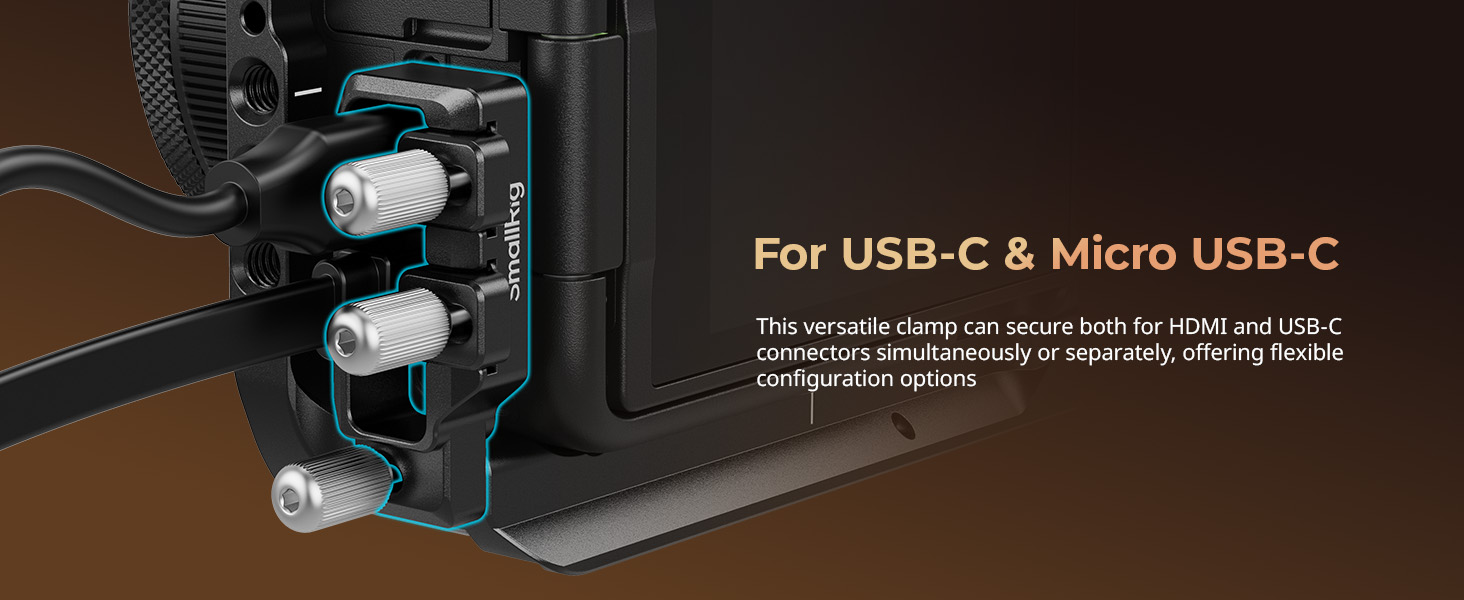 • For USB-C & Micro USB-C: This versatile clamp can secure both for HDMI and USB-C connectors simultaneously or separately, offering flexible configuration options.