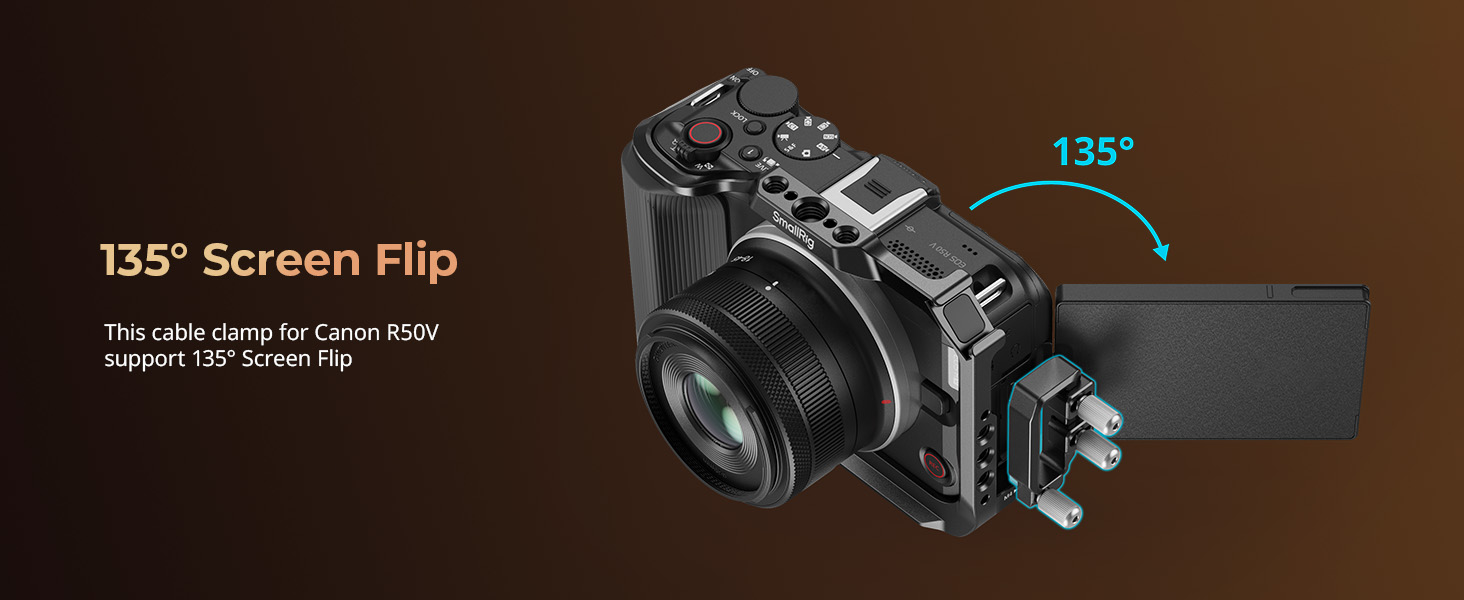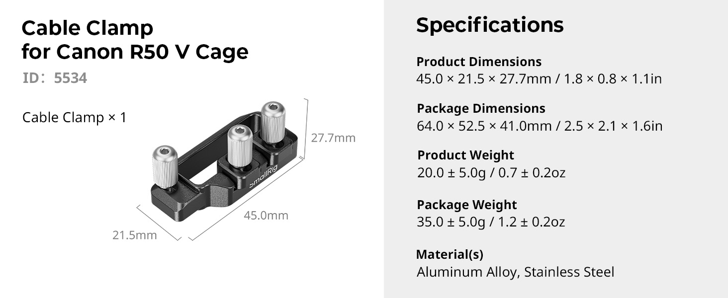 Note: This cable clamp only compatible with SmallRig camera cage for Canon R50 V 5427 / 5428.