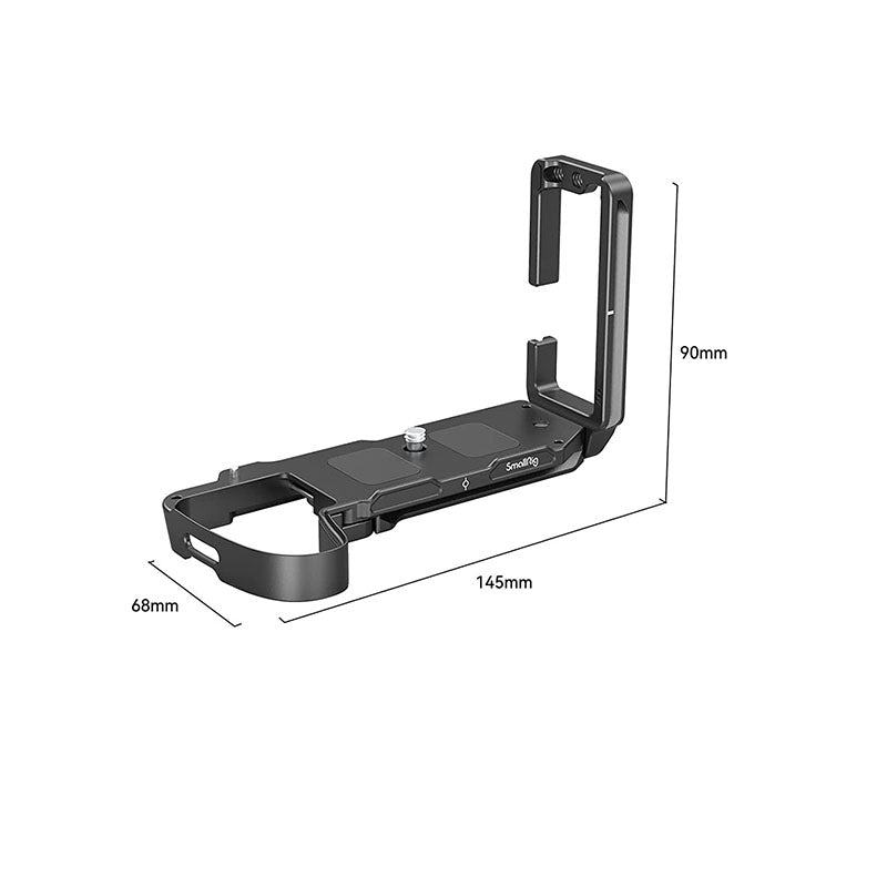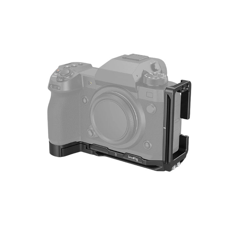 SmallRig L Bracket for FUJIFILM X-H2S 3928 is designed for quick switch between horizontal and vertical shooting while improving grip experience. Securing camera via a 1/4"-20 screw and an anti-twist locating pin at the bottom, the L bracket comes with protective cushions that prevent scratches and a hinge arm at the battery door that fits the camera well and improves grip experience of the little finger. Its Arca-Swiss baseplate and side plate each has a center mark. In the baseplate, there are 1/4 "-20 threaded holes for Manfrotto Quick Release Plate 1280, Side Handle 2093, etc., Arca-Swiss mounting point on the bottom for Arca-Swiss tripod and DJI RS 2 / RSC 2; and a built-in strap hole for Hand Strap 3848 and 2456. On the top of side plate, there are two 1/4 "-20 threaded holes which are available to use with Cold Shoe BUC2736 for attaching microphone, light, and more devices. The stretchable side plate gives access to HDMI cable and can be adjusted back and forth for 180° opening of the LCD screen. Its gap design means you can rotate the screen about 60°. In addition, an accessible flat-head screwdriver and a hex spanner are included for quick assembly and disassembly.