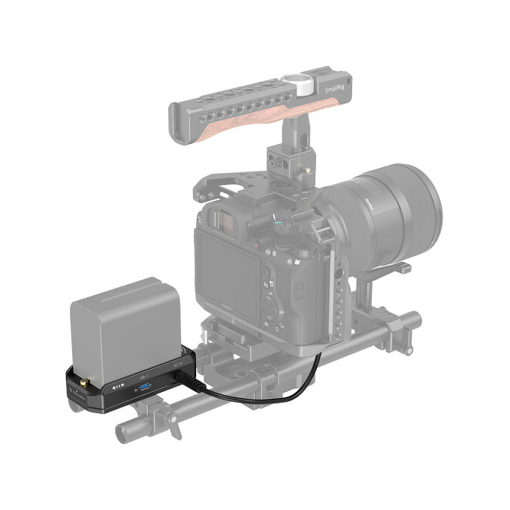 SmallRig NP-F Battery Adapter Mount Plate Kit with NP-FZ100 Dummy Battery Power Cable (Advanced Edition) 4341 is Designed to enable NP-F batteries on the market (including Sony original and third-party batteries) to power Sony FX3 / FX30/ α7CR / α7C II / α7 IV/ ZV-E1 and various mirrorless cameras, the set can achieve long-lasting power supply. The NP-F Battery Plate is made of aluminum alloy with gold-plated electrical contacts to be more durable and conductive. The plate has a self-locking button for quick and secure battery installation and a 1/4''-20 threaded hole for easy attachment to the cage. There are 36W 7.4V / 12V DC output on its sides and a 36W USB-C port, which can output current or charge an NP-F battery. All ports have short circuit protection and automatic wake-up and sleep functions. In addition, this item features LED lights indicating USB charging and discharging state, battery connection, and battery life.