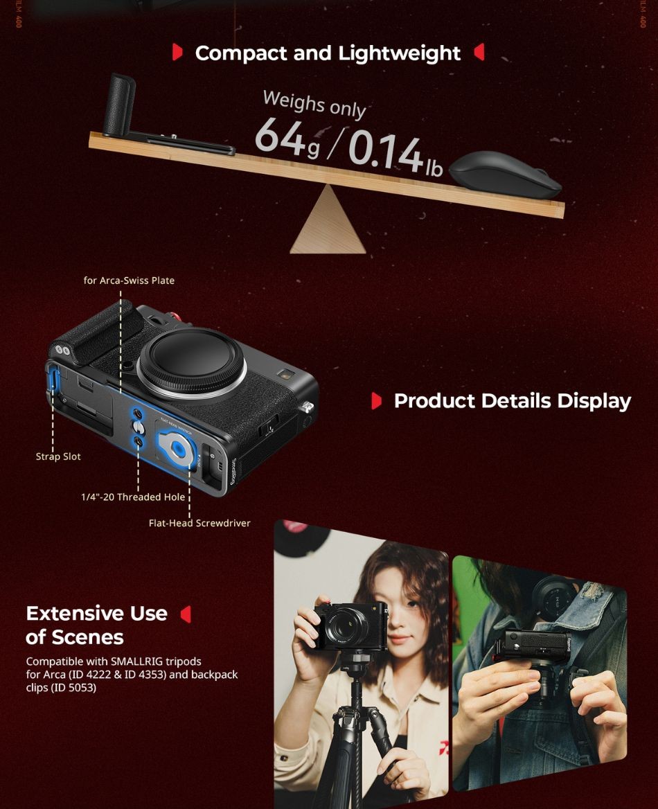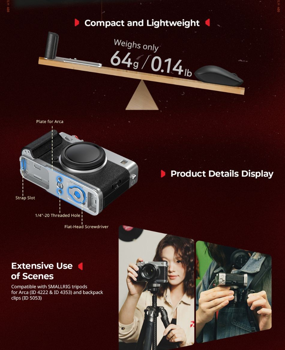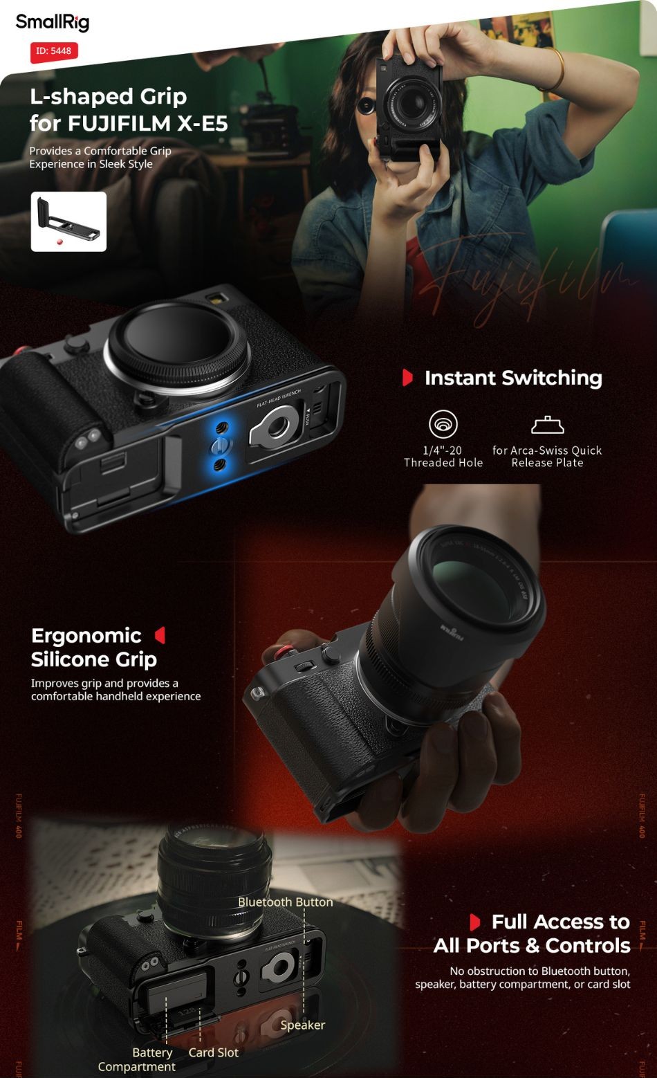 Compatibility: Mounts to Fujifilm X-E5 via captive 1/4"-20 screw