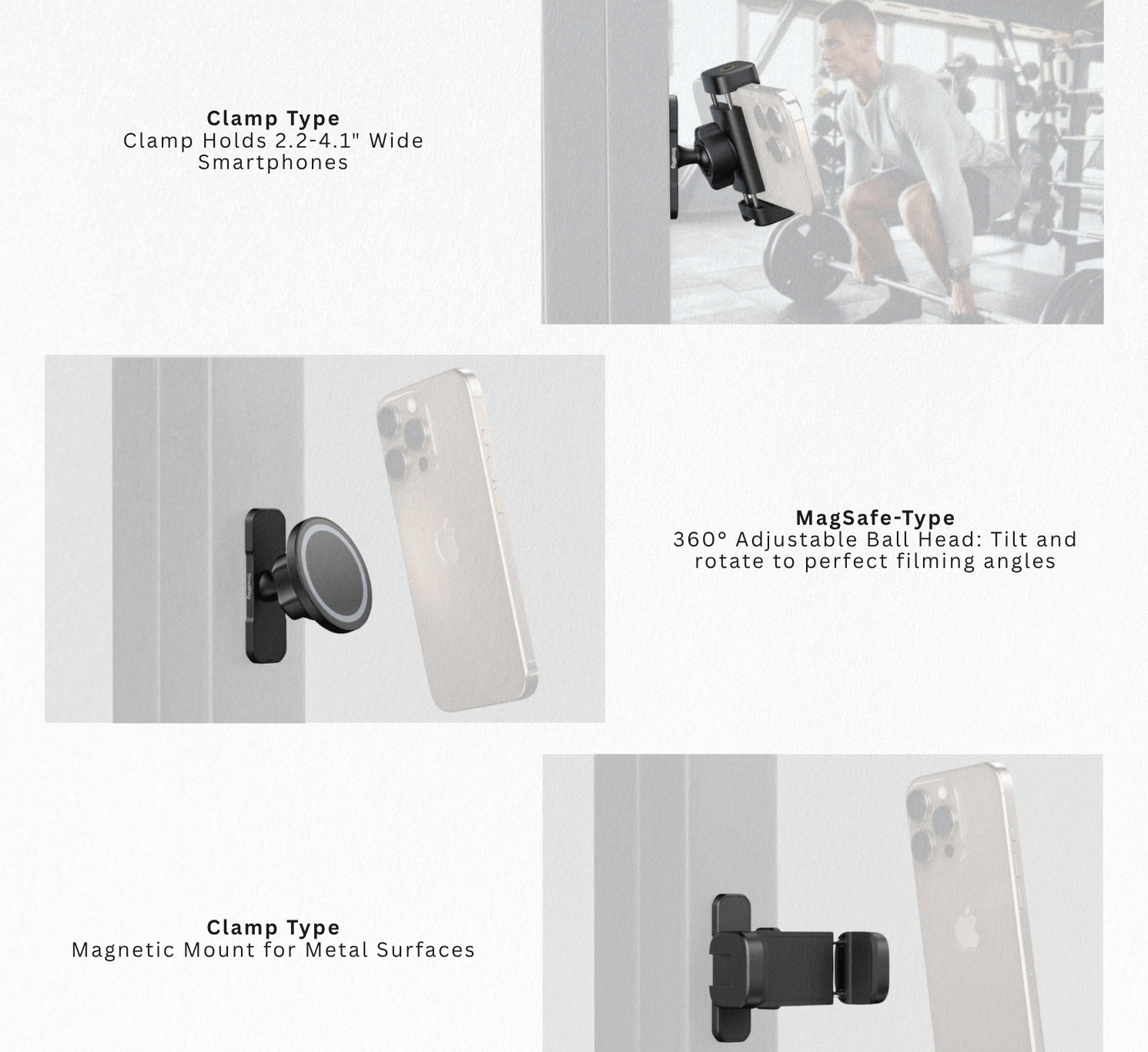● MagSafe-Compatible Magnetic Mount: Compatible with both iPhone and Android devices for quick phone attachment and instant shooting setup