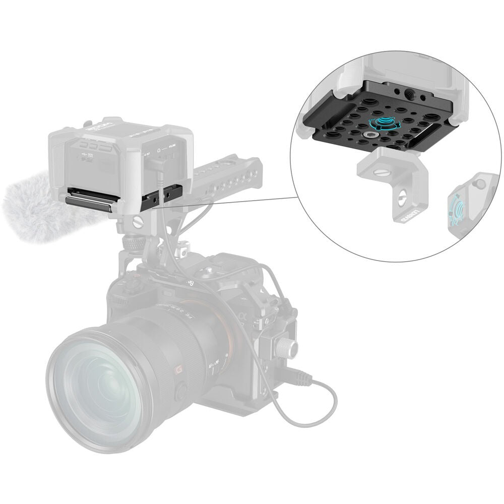 SmallRig Mount Plate for Zoom F3 MD4883 is designed to securely and stably mount the Zoom F3 recorder while offering various expansion options. Featuring a 1/4"-20 screw, side slots, and body-contact padding, this plate ensures a firm attachment to the back of the F3 recorder, preventing rotation when used with additional accessories. The plate also features built-in 1/4"-20, 3/8"-16, and ARRI locating holes, along with 1/4"-20 locating holes, enabling the attachment of accessories such as monitor mounts, handles, camera cages, magic arms, and more.