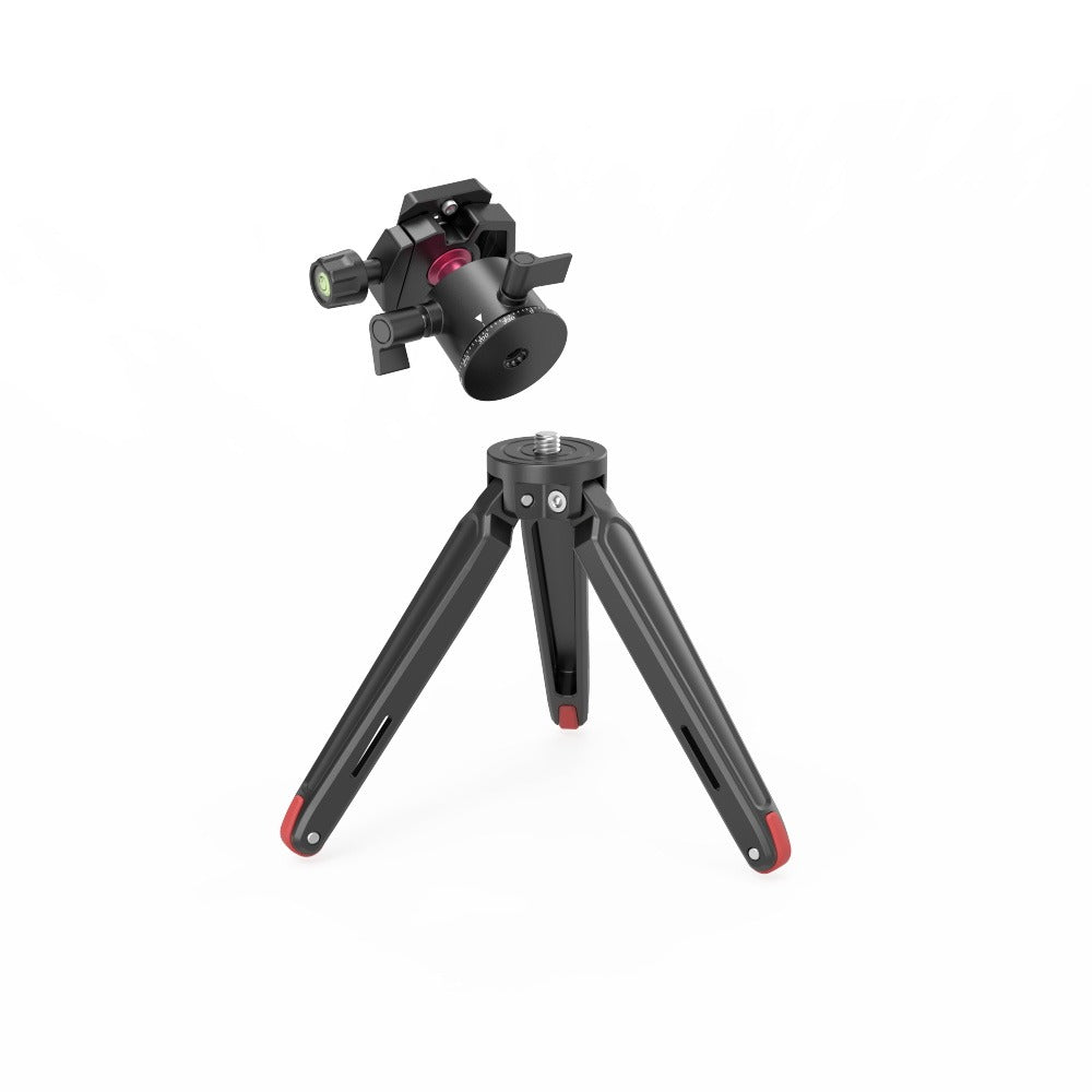 SmallRig Tabletop Mini Tripod with Panoramic Ball Head BUT2664 is the perfect mini tripod for compact DSLRs, mirrorless cameras, smartphones, action cameras, and other devices, and can also act as a grip for handheld shooting. The tripod without ball head holds up to 20kg while the ball head itself holds up to 2kg. It’s solid and secure, and the rubber feet guarantee a stable and slip-free foundation on any surface. The ball head with accurate calibration support 360° panoramic rotation for panoramic shooting, -90°/+45° front tilt and -50°/+50° lateral tilt for multi-angle adjustment including horizontal shooting and vertical shooting. It comes with a standard Arca-Swiss plate, which is compatible with other Arca-Swiss clamps to ensure a quick mount/dismount of your device.