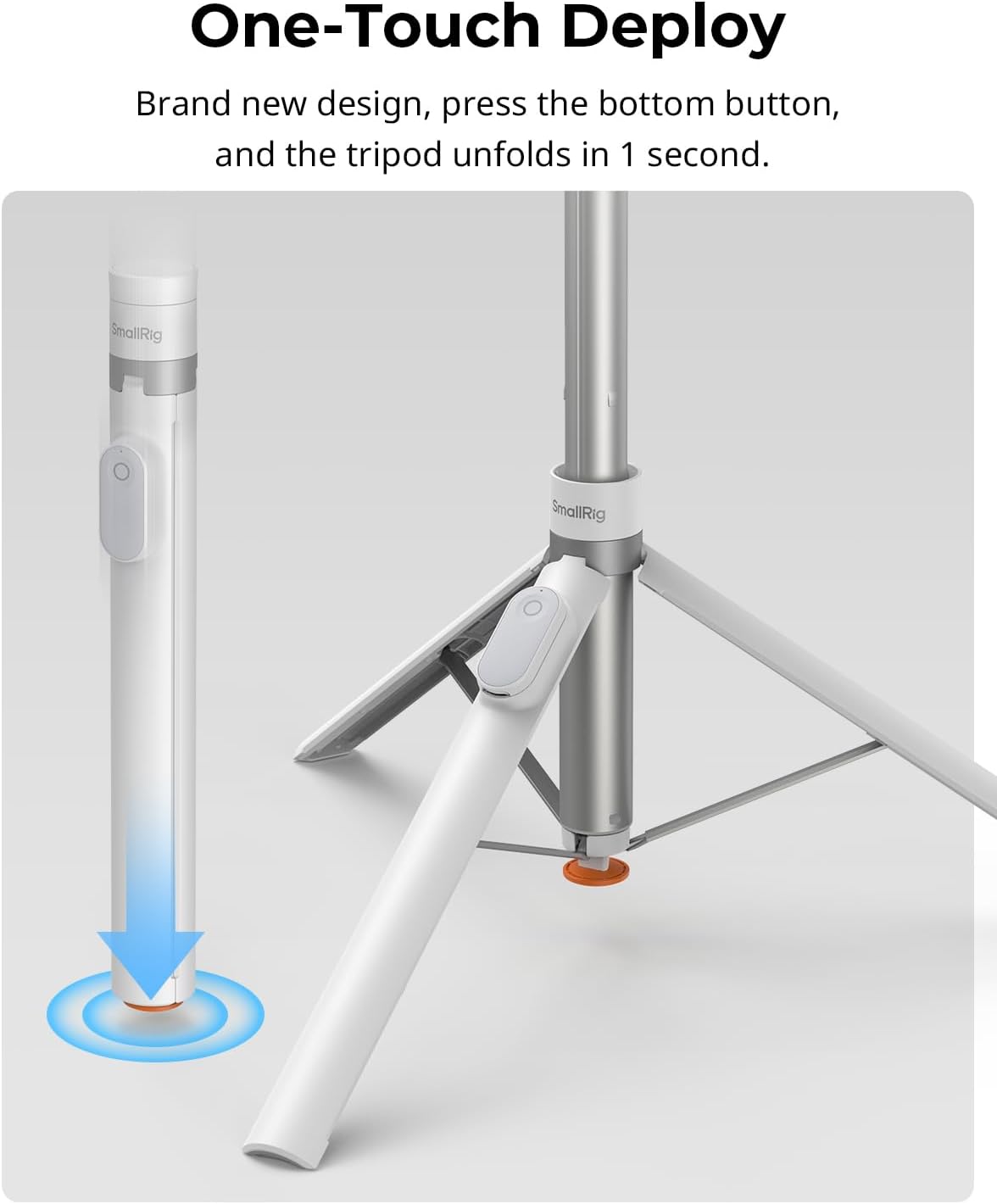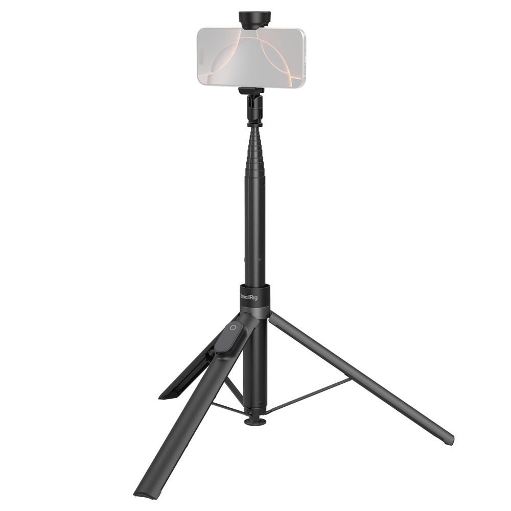 The ST30 One-Touch Deploy Selfie Stick Tripod from SmallRig is a versatile smartphone support designed for seamless adaptability to a variety of shooting conditions. It has flexible stepless length adjustment that allows it to effortlessly extend from 13 to 66.1" to suit a wide range of shooting needs. It has a unique triangular base with quick, single-action deployment design, providing stability on almost any terrain. The integrated smartphone holder can hold devices from 2.4 to 3.9" wide and offers multi-angle shooting with a 180° pan and tilt range.