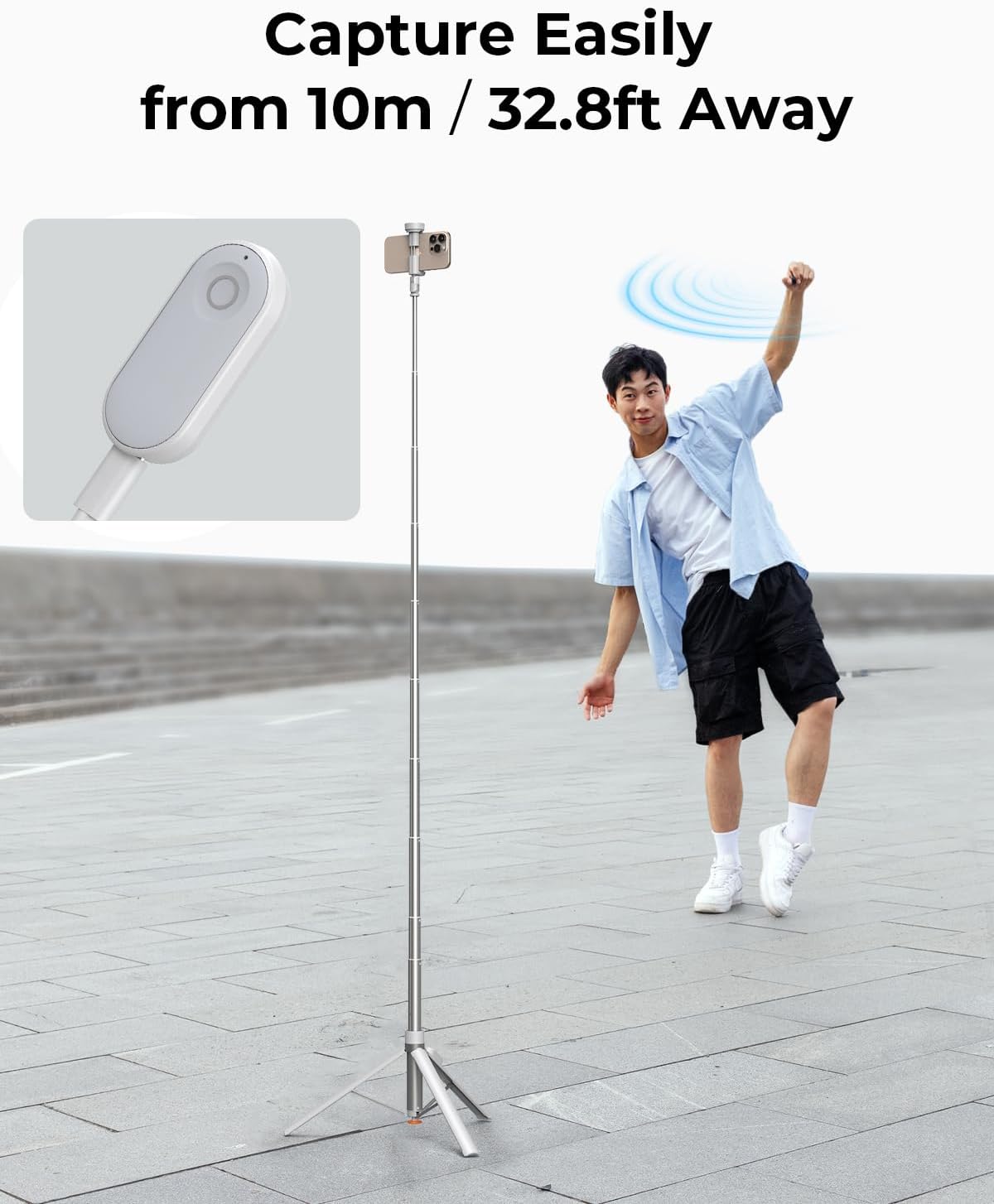 The ST30 features a stylish design and takes versatility to the next level with a magnetically attached Bluetooth remote control. It is Android and iOS compatible and provides a stable wireless connection with a range of up to 32.8'. It can be used as a wireless remote when using the tripod or as an integrated trigger when using the selfie stick configuration. A USB-C cable is included for convenient charging.