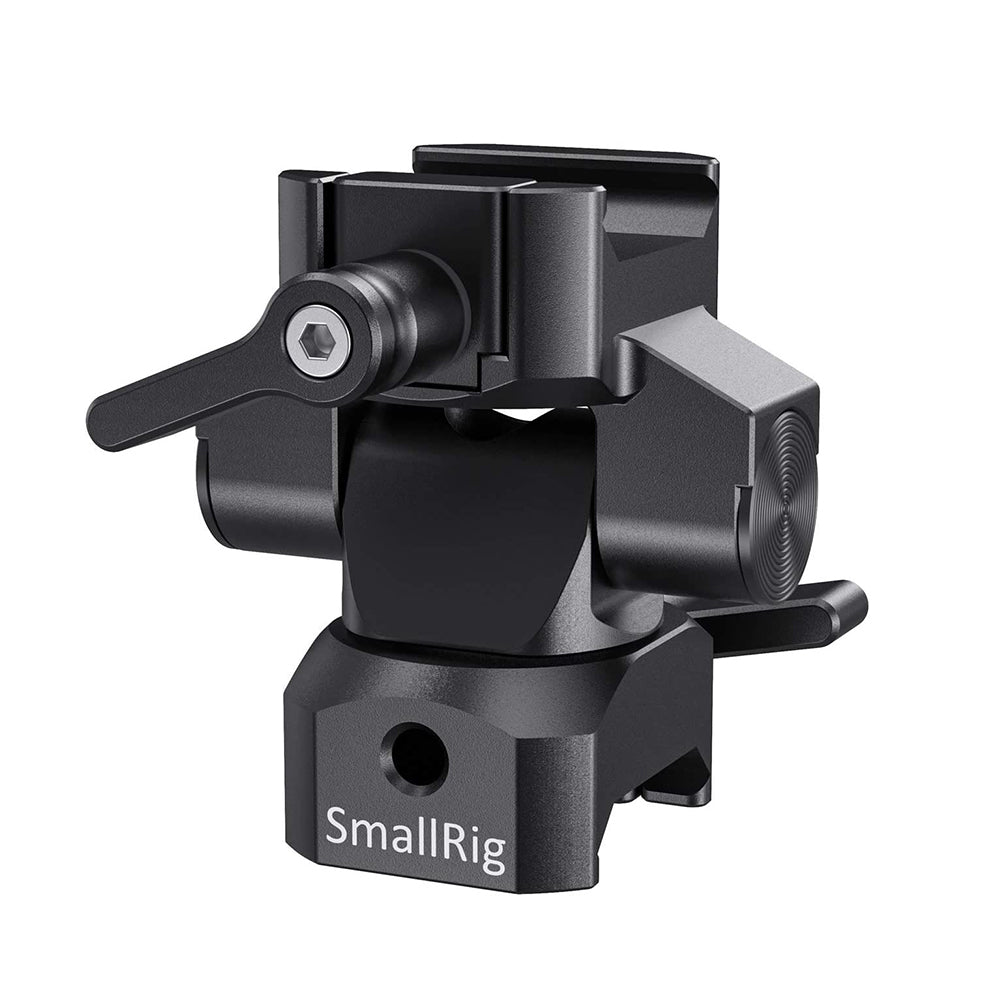 The adjustable Swivel and Tilt Monitor Mount from SmallRig attaches to your camera rig via a NATO clamp, and the NATO clamp at the other end attaches to a monitor with a NATO rail.