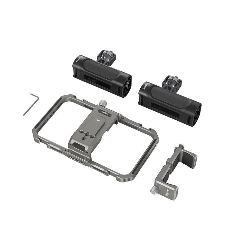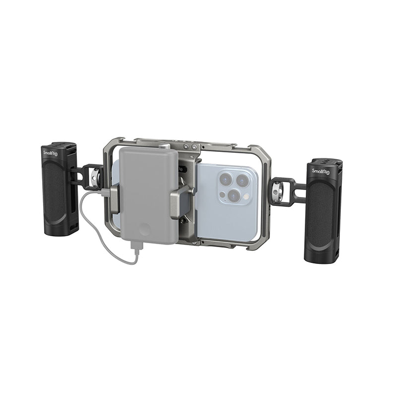 Built to fit most smartphones up to 6.7" wide, with or without an outer case, the 3609 Universal Video Kit from SmallRig is designed for upgraded vlogging and video recording. It includes two side handles for an improved, stable shooting experience, as well as a magnetic, anti-drop quick release power bank holder for a complete power supply solution. Also featured are multiple 1/4"-20 threads and cold shoe mounts for attaching accessories such as tripods, microphones, LED illuminators, and more. To provide access to your phone's buttons, the holder can be adjusted left or right and features shims to increase stability and help prevent scratches. This phone cage also enables horizontal and vertical shooting.