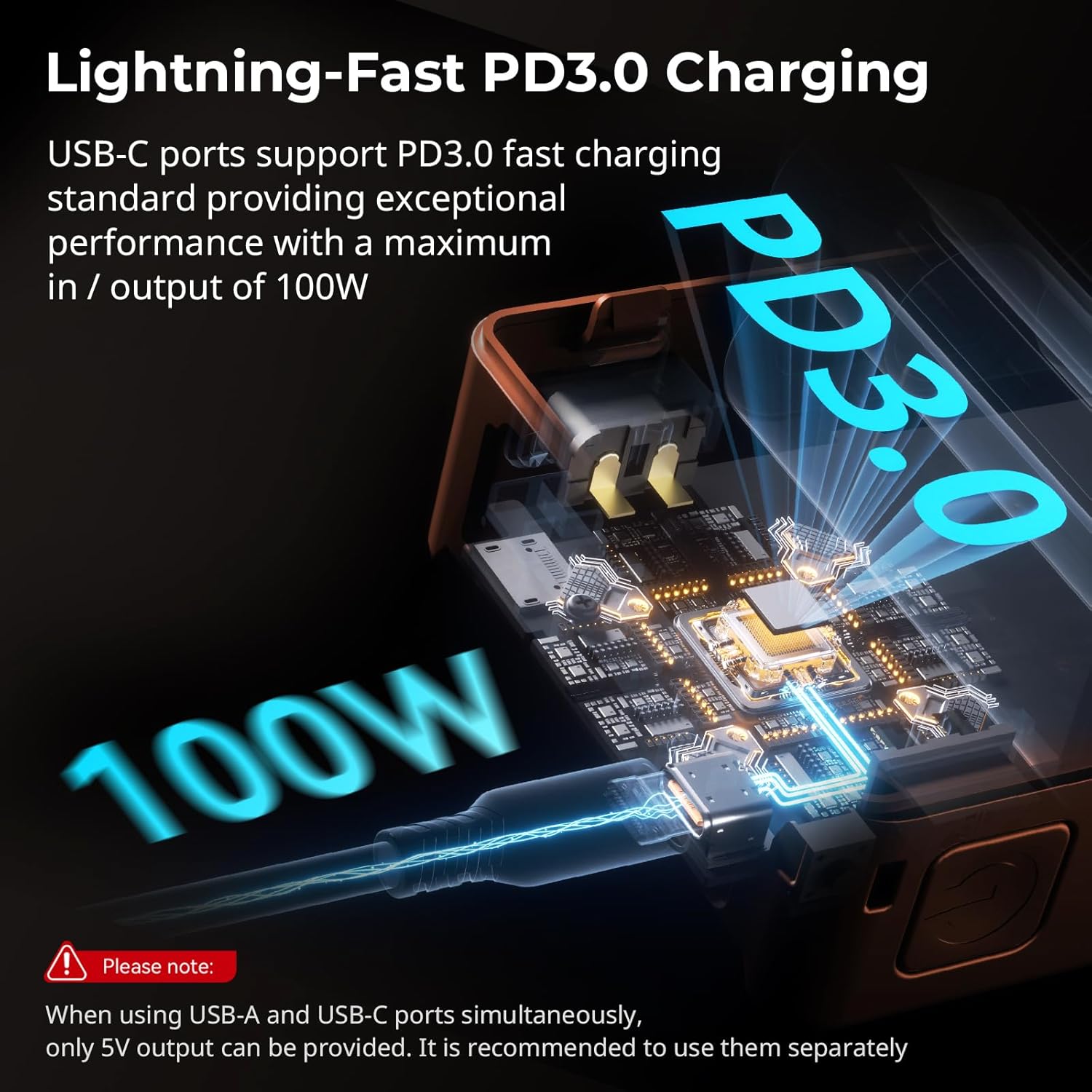 Intelligent BMS chip for efficient and safe use: a built-in highly integrated BMS chip takes up less space while supporting varied fast-charging protocols and bi-directional 65W (Max) USB-C PD fast charging!