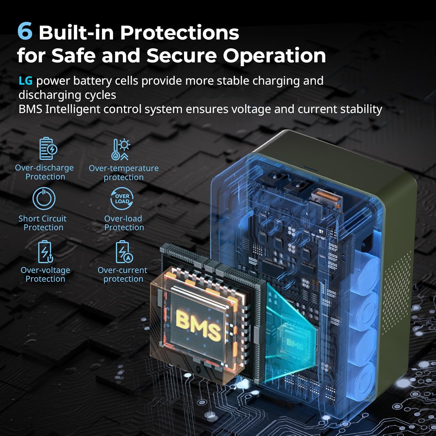 Reliable Battery Performance: Utilizes top-quality LG cells for safe and stable operation during multiple charge cycles.