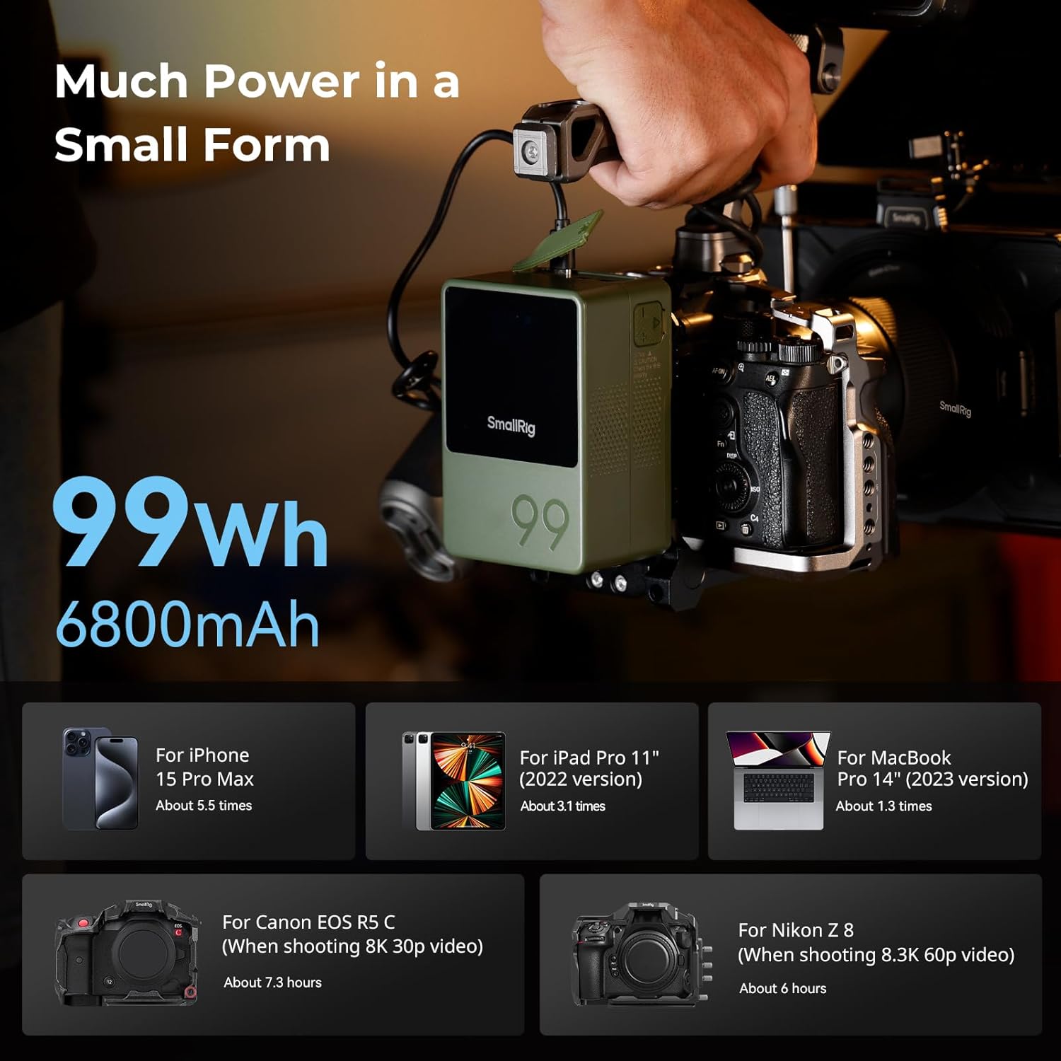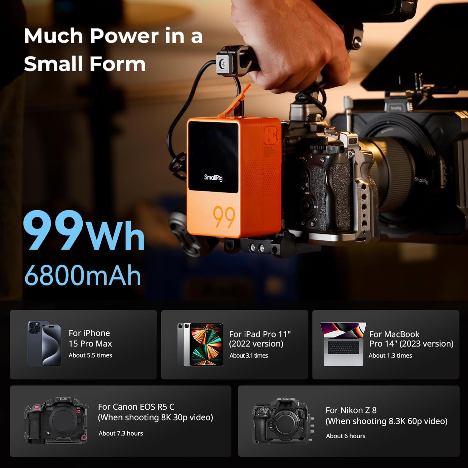 Highly integrated design, about 70% the size of a normal V-mount battery, lighter and more portable;