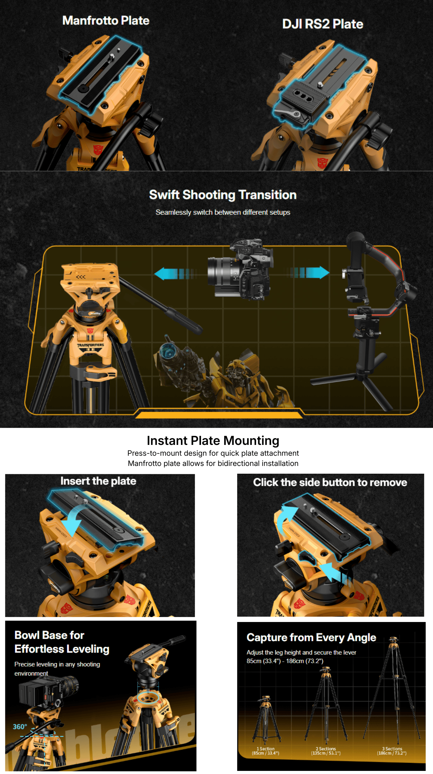 - Standard & DJI RS Quick Release Modes