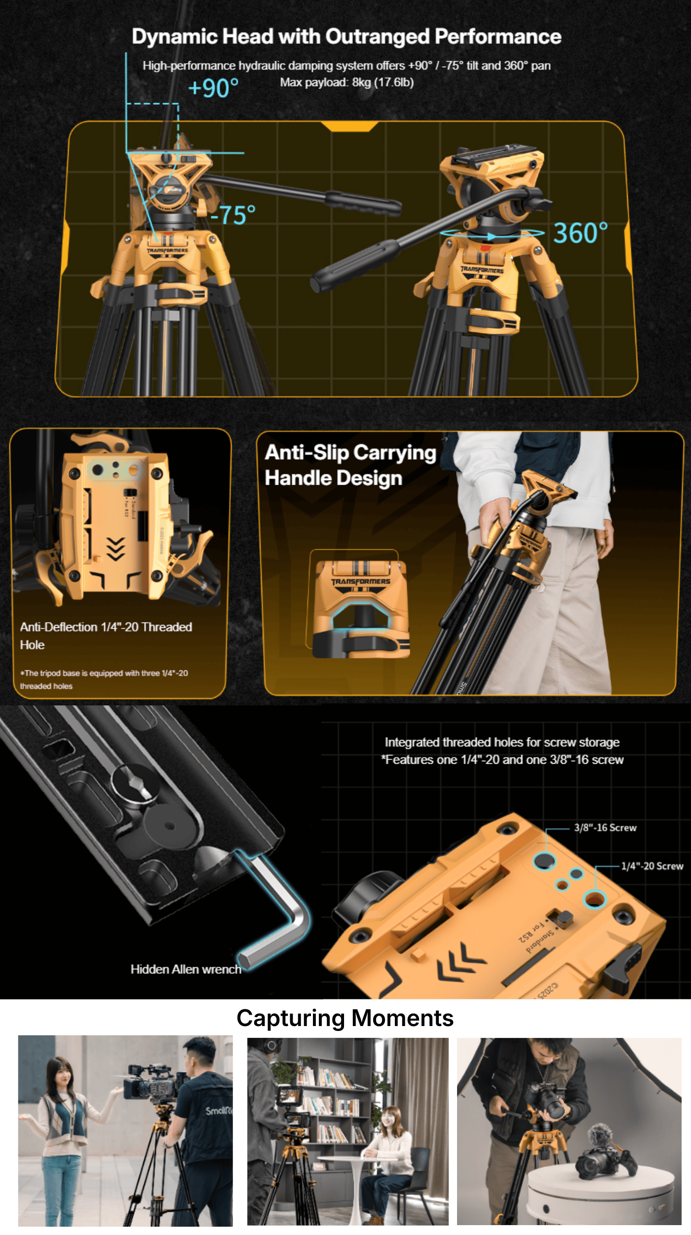 - 1/4"-20 & 3/8"-16 Accessory Threads