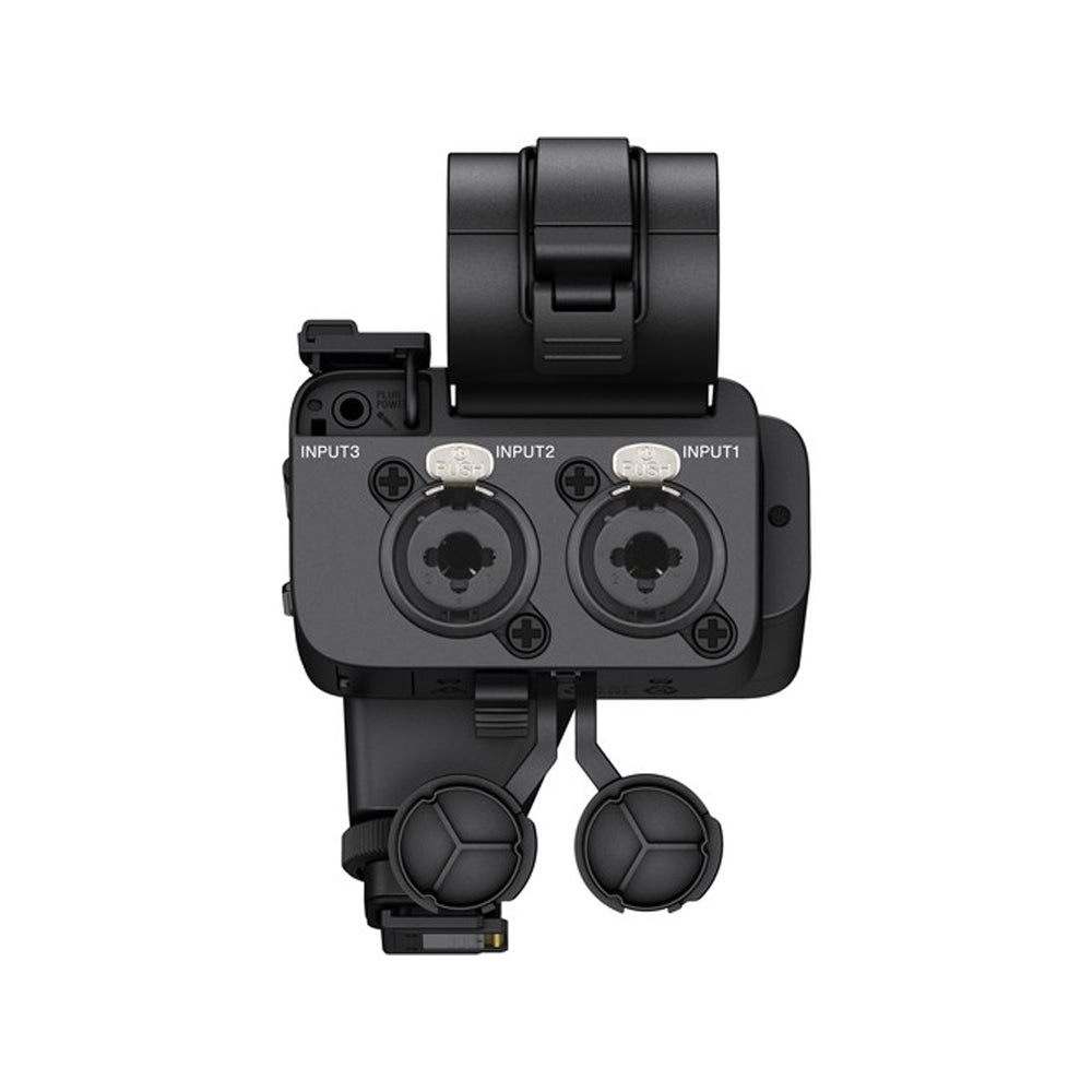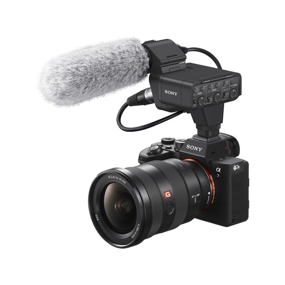 The Sony XLR-K3M is a dual-channel digital XLR audio adapter that allows you to connect microphones and other audio sources to cameras equipped with a Multi Interface Shoe. Released alongside the a7R IV, which benefits from its built-in digital audio interface, the adapter is able to produce its best quality by delivering a digital audio stream directly to the camera through the Multi Interface Shoe. Other Sony cameras with the standard MI Shoe can still make use of the microphone as there is a selectable digital/analog output.