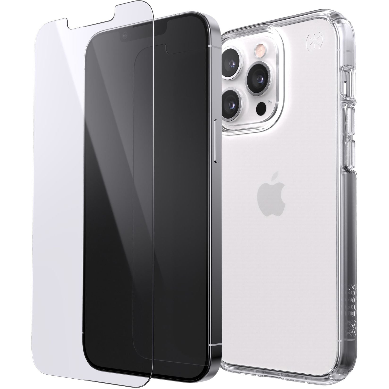 [CLEARANCE] Speck Presidio Perfect-Clear iP-13 Pro Max Transparent Phone Case and Shield View Tempered Glass Pack with Innovative Impact Technology, 9H Anti-Scratch Coating and Microban Protection