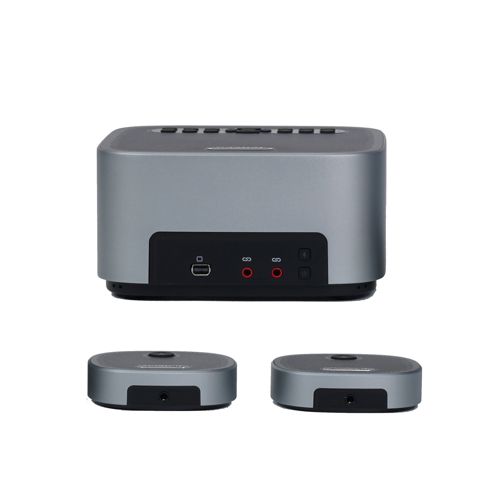 • 360° Omnidirectional 9 Meters Pickup Radius, Built-in 8x Professional Mics Array& a Hi-Fi Speaker, USB / Bluetooth / Wireless Dongle Connection