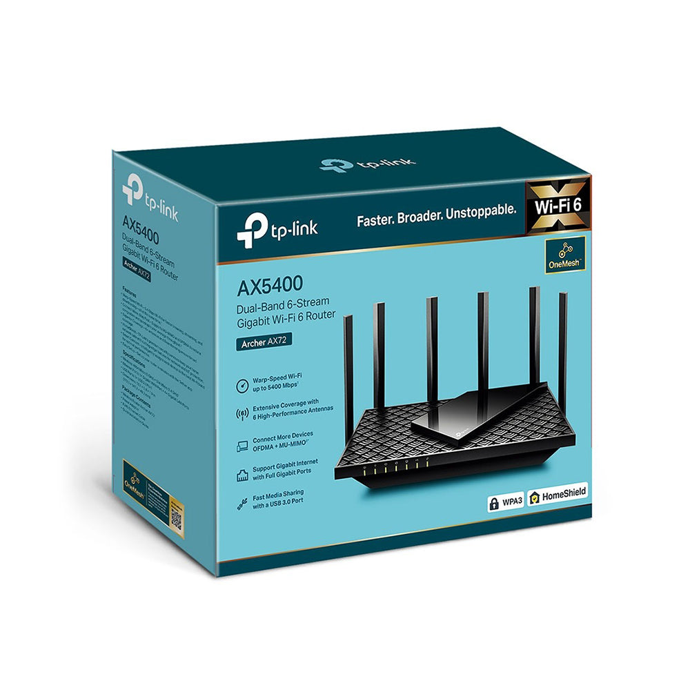 TP-Link Archer AX72 AX5400 Dual Band Gigabit MU-MIMO Wi-Fi 6 Router with 4804Mbps at 5GHz, 574Mbps at 2.4GHz, Qualcomm 1GHz Dual-Core CPU, USB 3.0 Port, 4 Gigabit LAN Ports, OFDMA, Beamforming, Access Point Mode, IPv6, VPN Server, OneMesh