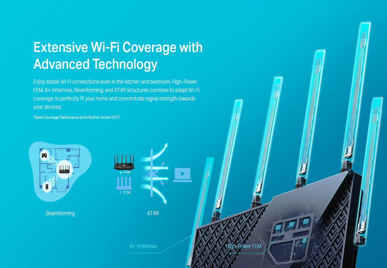 - Extensive Coverage – 6× antennas and Beamforming ensure broad coverage.