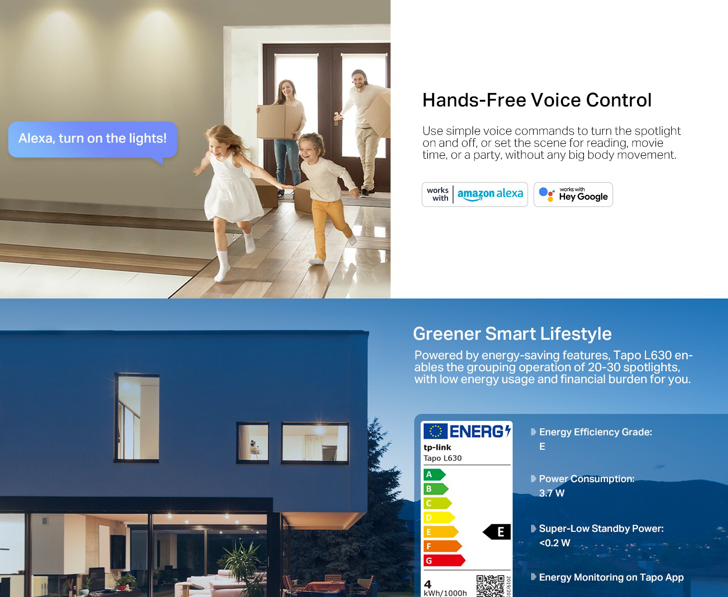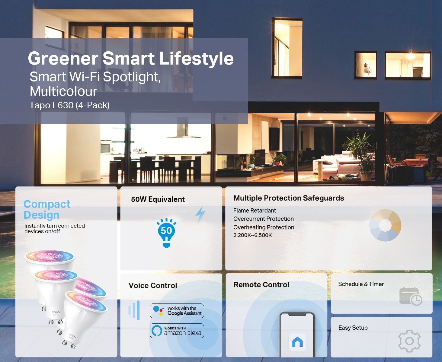 Voice Control - Manage your smart spotlights with voice commands via Amazon Alexa or Google Assistant.