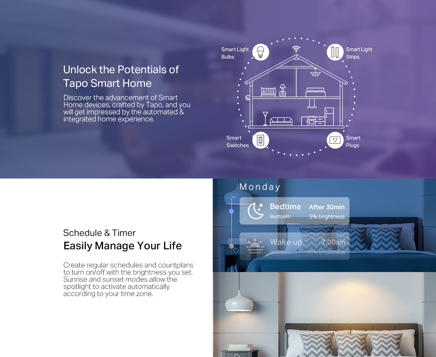 Schedule - Preset a fixed schedule to manage your smart devices automatically.