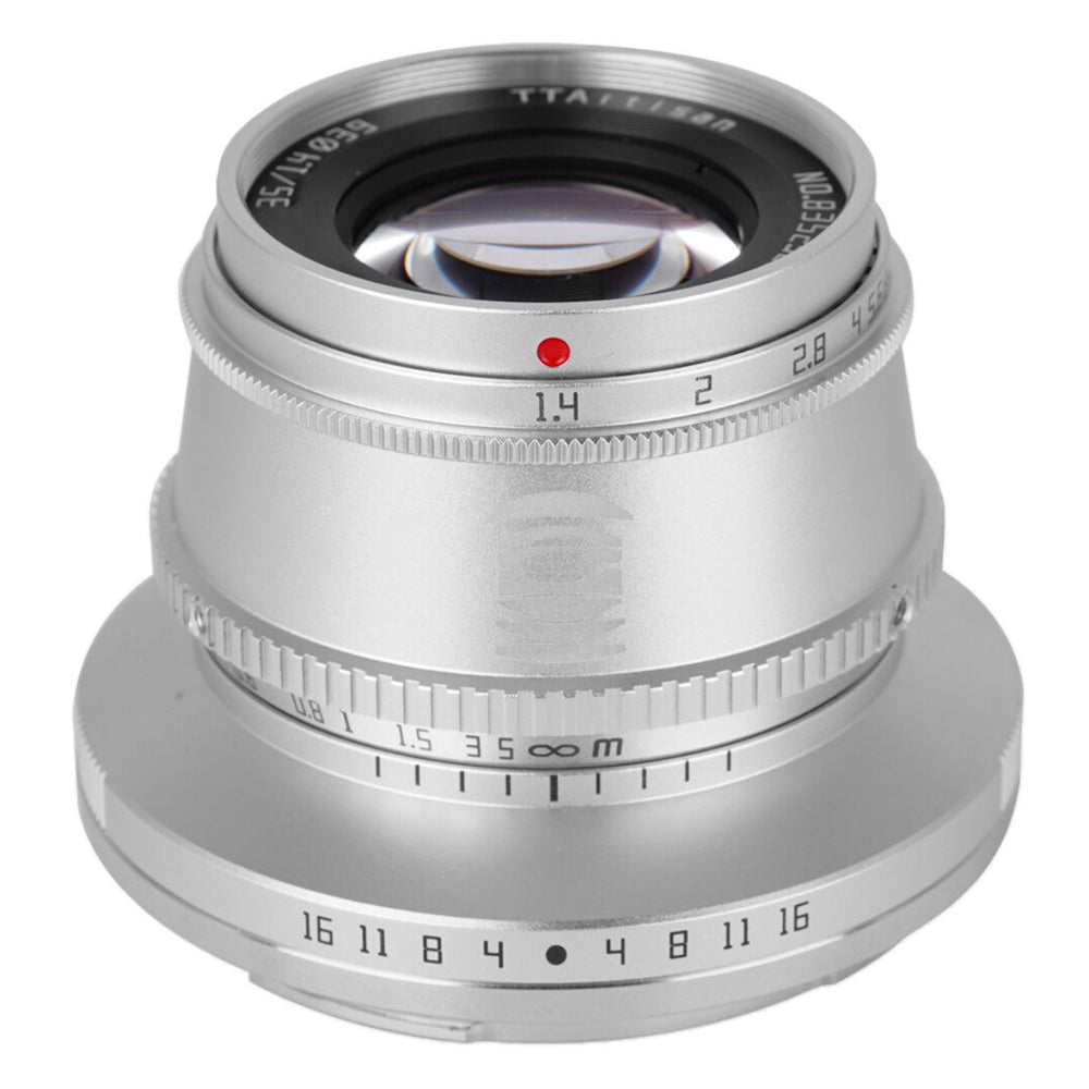 Leica L-mount 35mm f/1.4 Lens from TTArtisan is a compact long-normal prime characterized by its fast design and intuitive handling. The bright f/1.4 maximum aperture offers great control over depth of field and also benefits working in low-light conditions. The lens uses a Sonnar optical design, which prioritizes sharpness and low distortion for clear and accurate rendering. Also, the lens's petite form factor features a durable silver anodized finish with a stylized engraving on the lens barrel of the optical design.