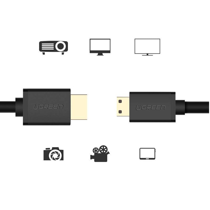 The UGREEN 11167 4K Male Mini HDMI to Male HDMI Cable (1.5m) supports mini HDMI to HDMI & HDMI to mini HDMI. It can help you to stream audio and video from a camera, tablet or laptop through the mini HDMI Port to Your HDTV or projector with HDMI port. It enables you to play games on your big-screen HDTV display or share high-definition video and digital audio together with your family and friends.