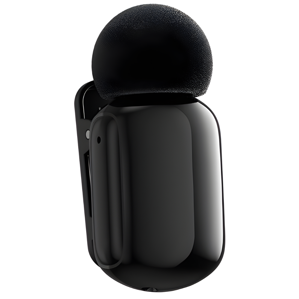 Design: Ultra-Compact 6 g Clip-On Mic with Lightweight Receiver & Charging Case