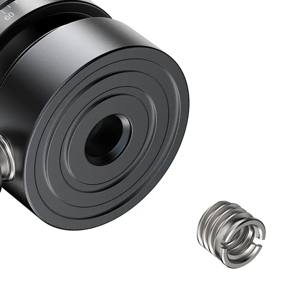 - Base Mount: 3/8"-16 Female with 1/4"-20 Bushing Adapter