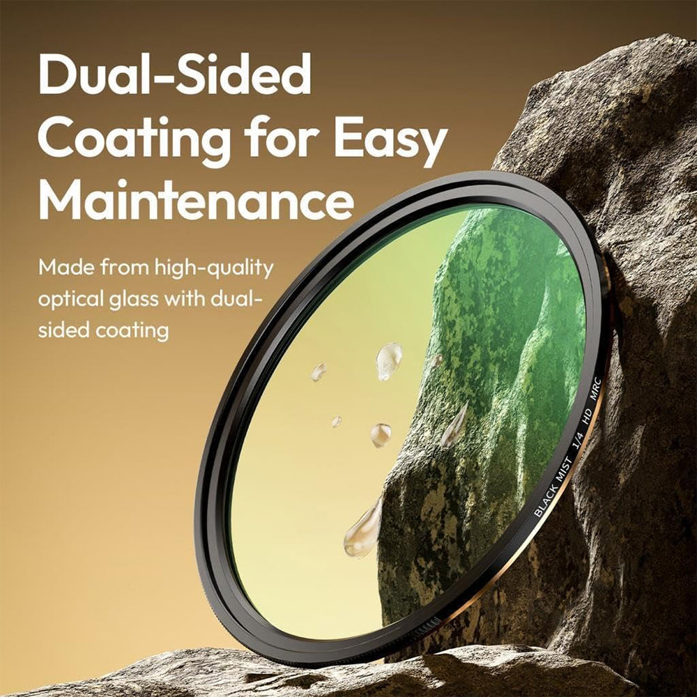 A multi-layer double-sided coating resists water, oil, dust, and fingerprints, making the filter easy to clean while maintaining clarity and sharpness over time.